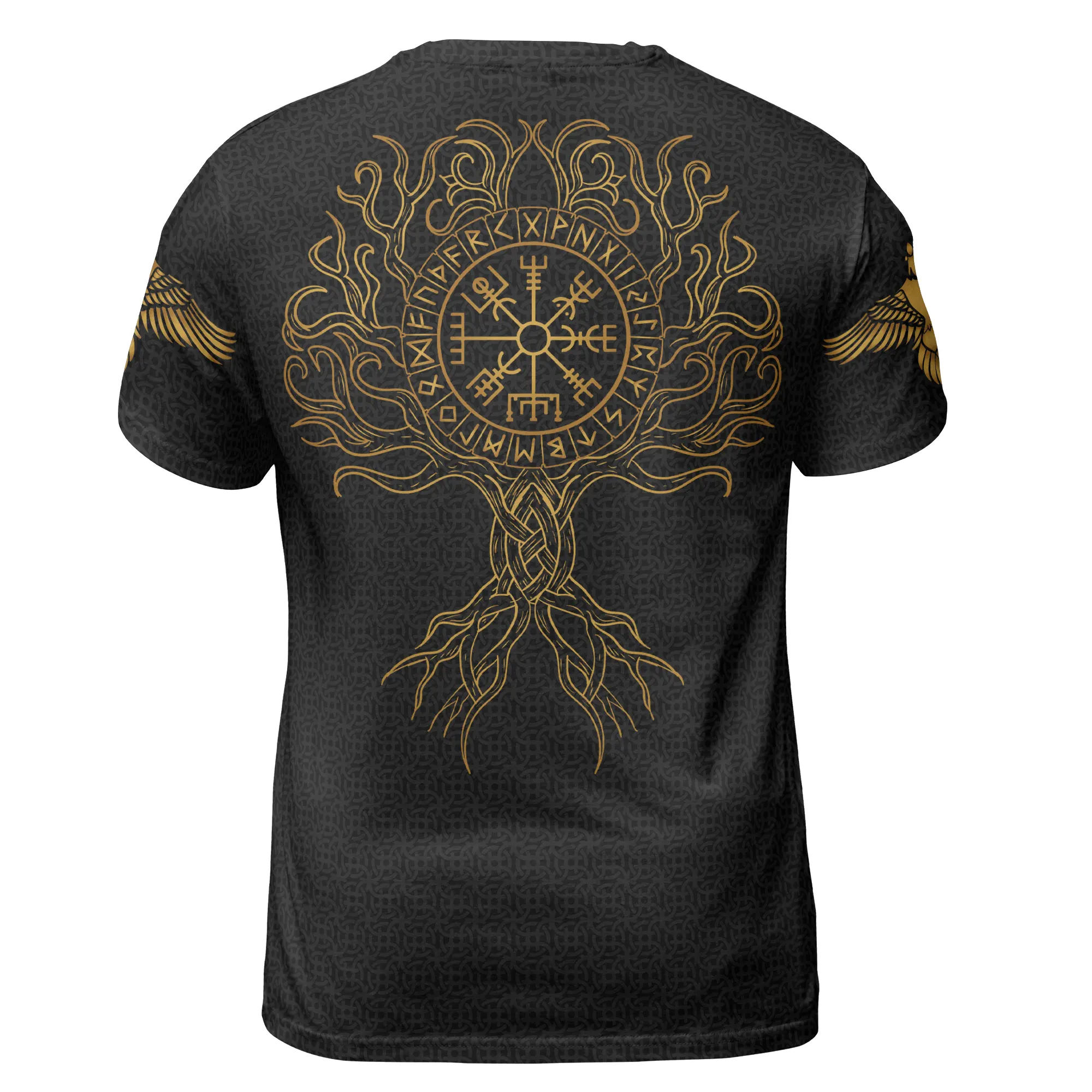 Elevate your Norse style with Viking T shirts featuring the Vegvisir compass and Gold Tree of Life—timeless symbols of guidance, harmony, and ancient heritage.