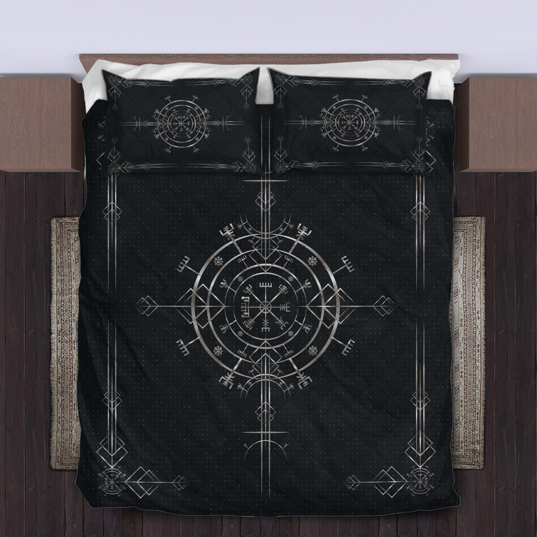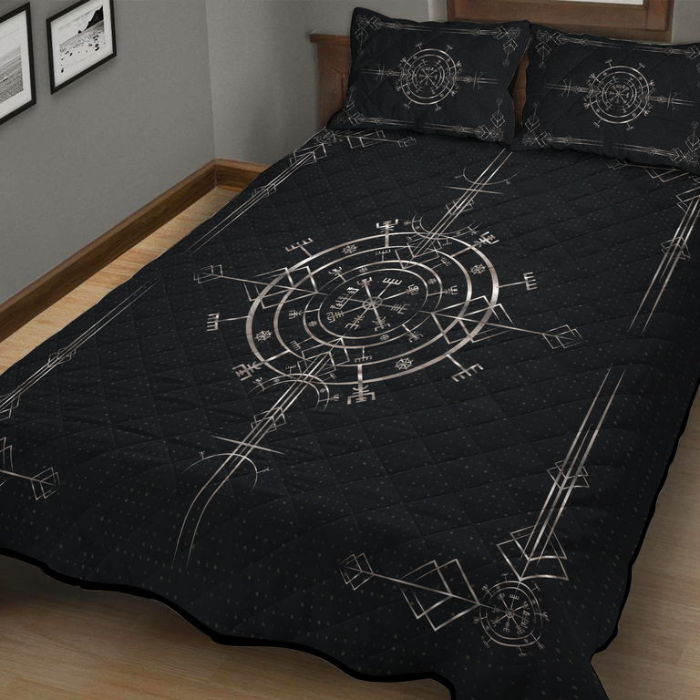 Embrace Viking heritage with the Vegvisir In Silver Color Quilt Set. Featuring a striking Norse-inspired compass design, hypo-allergenic cotton filling, and luxurious diamond stitching, it combines warmth, comfort, and bold Viking style for any bedroom.