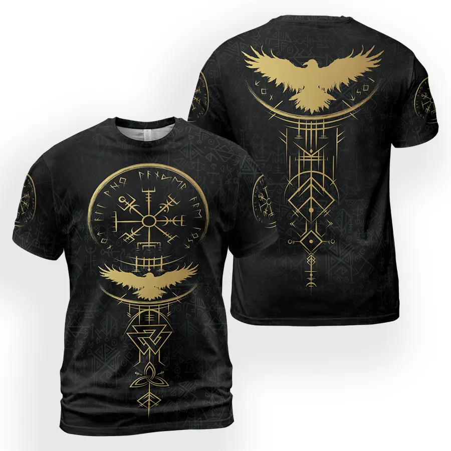 🏆 Raven & Compass Rune Viking T-Shirt — Wisdom, Protection & Fearless Journeys